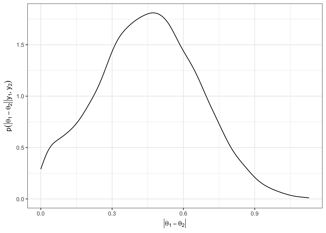 y = TeX("$p(|\\theta_1 - \\theta_2 || {y}_1, {y}_2)$"))