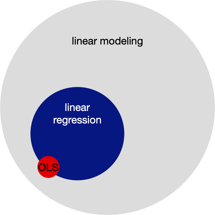 - Linear regression is but a special case of modeling the conditional expectation of one variable \(Y\) given other variables \(X\) where \(E[Y|X] = X \beta\). This is what we will focus on today.