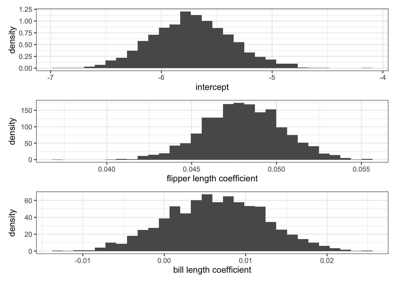 rbind(OLS, posteriorMean) (Intercept) flipper_length_mm bill_length_mm