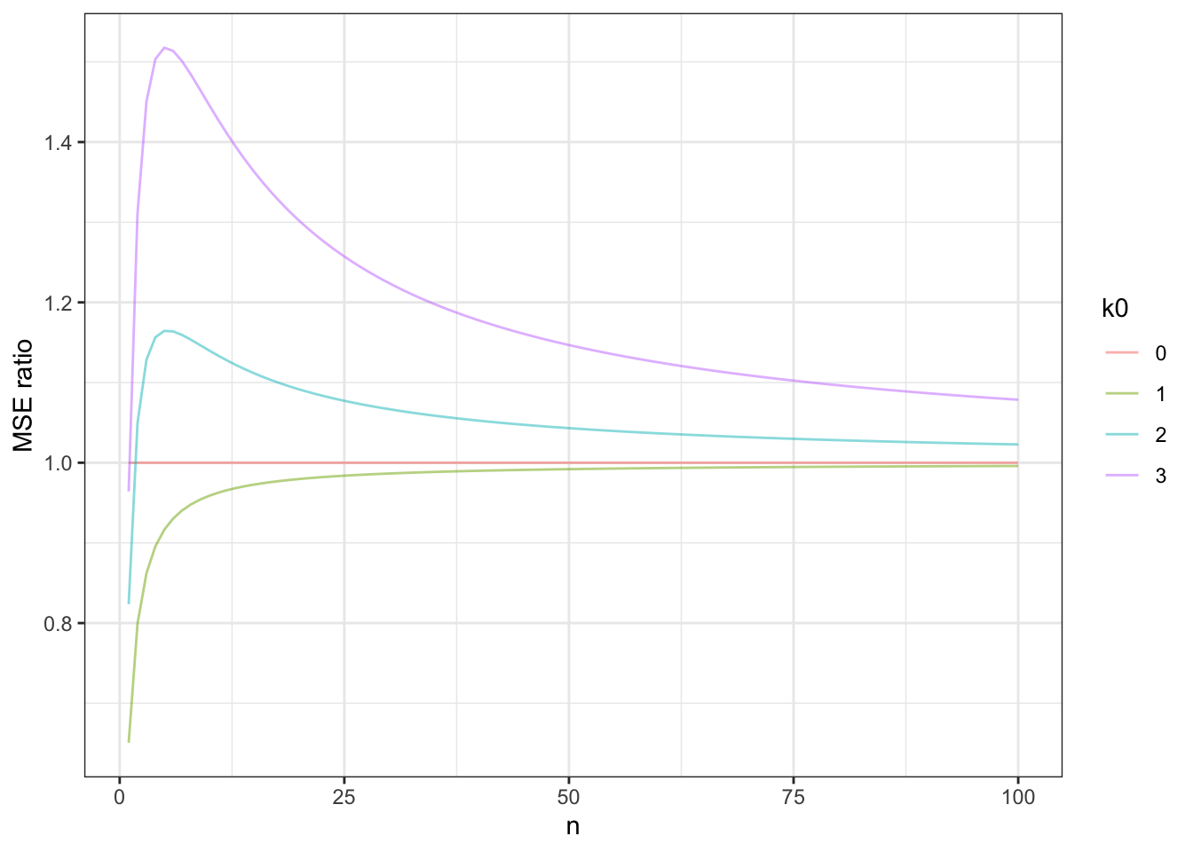 labs(x = "n", y = "MSE ratio", col = "k0") +