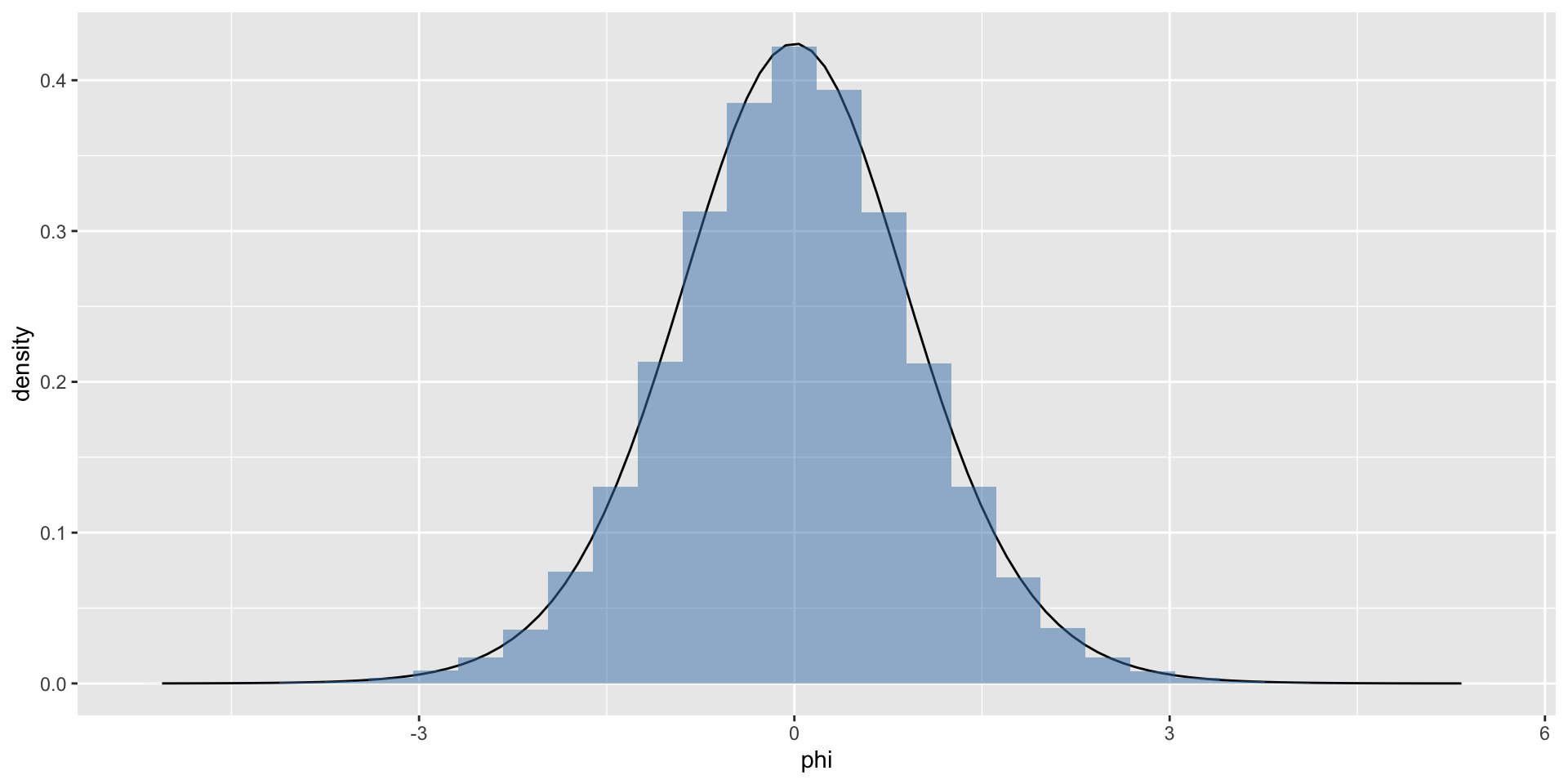 Next, transform each sample of the object theta to phi using \(f(\theta)\) as defined in exercise 1.